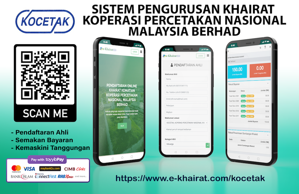 Anda boleh klik pautan pendaftaran ahli dan mengisi maklumat anda. Anda perlu menunggu kelulusan dari pentadbir khairat terlebih dahulu sebelum yuran pendaftaran dan yuran tahunan dijelaskan.